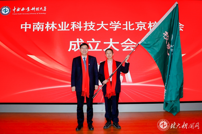【林大网讯】(文/校友办)砥砺奋进六十六载,勇毅前行逐梦未来。为有效整合北京校友资源,推动“校友回湘”工作落实落地,1月13日下午,中国工程院院士、学校党委书记吴义强率队赴北京参加北京校友会成立大会和“林业科教创新与产业绿色低碳高质量发展”学术研讨会,推进“校友回湘”工作并组织校友座谈交流。学校党委副书记仇怡,纪委书记杨鑫铨,副校长王忠伟、尹健、闫文德、尹双凤出席,省教育厅“校友回湘”工作专班执行主任周韶峰受邀作湖南省推进“校友回湘”政策宣讲。在京及来自全国各地的校友代表共150余人参加活动。