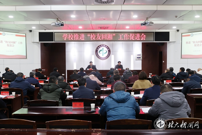 【林大网讯】(文/校友办)为加快推进“校友回湘”工作,1月19日上午,学校在崇德楼四楼4会议室召开推进“校友回湘”工作促进会。中国工程院院士、党委书记吴义强出席会议并讲话。会议由副校长朱道弘主持。