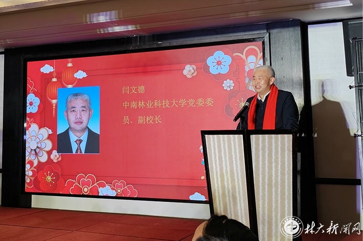 【林大网讯】(文/校友办)缘起湘江之畔,聚首黄河之滨。2月3日小年之际,以“感恩、团结、求实、创新”为主题的甘肃校友会换届暨迎新春联欢会在金城兰州召开。学校副校长闫文德出席,陕西、贵州、安徽、宁夏等4个兄弟地方校友会代表到会祝贺,来自甘肃各地近50位校友参加活动。会议由2016级环境设计专业王柳茜校友主持。