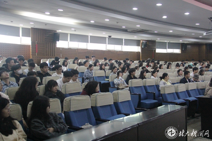 ▲食品科学与工程学院在图书馆报告厅举行“校友回湘”创业分享会