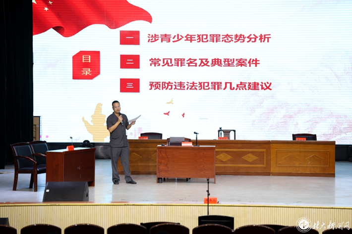 【林大网讯】(文/学生工作部、武装部)9月24日,长沙市天心区人民法院“法护青春”庭审进校园及法治宣讲活动走进学校,通过公开庭审、普法宣讲等方式,为400余名大一新生送上生动的法治教育课。学校党委副书记王忠伟,长沙市天心区人民法院党组书记、院长周丹,省人大代表、长沙市公安局刑侦支队侵财犯罪侦查大队教导员石勇,省政协委员、中南林业科技大学图书馆馆长张立强,长沙理工大学法学院学术院长吴勇,学校法学院副院长张小罗,长沙市天心区人民法院党组副书记、分管日常工作的副院长刘征出席本次活动。