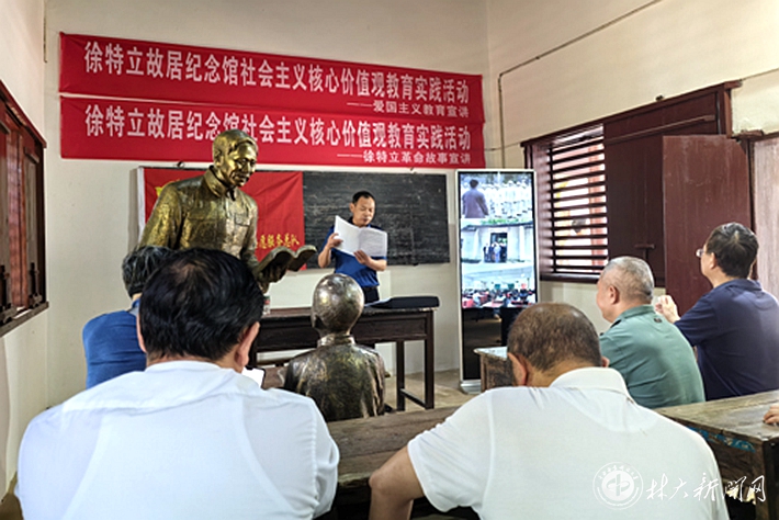 在徐特立创办的教室内,学院党委书记陈鹤梅给老师们上党课,他希望大家认真学习、深刻领会徐特立“三个第一”的精神,坚持“革命第一”,坚定理想信念、加强道德修养,对党忠诚;坚持“工作第一”,练就扎实的知识功底、过硬的教学能力、勤勉的教学态度、科学的教学方法,履职尽责、担当作为;坚持“他人第一”,有仁爱之心、把温暖和情感倾注到每一位学生身上,有敬畏之心、时刻牢记师德师风各项纪律规矩不越底线。