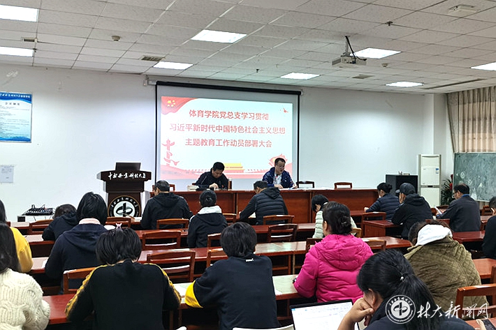 ▲体育学院召开学习贯彻习近平新时代中国特色社会主义思想主题教育动员大会
