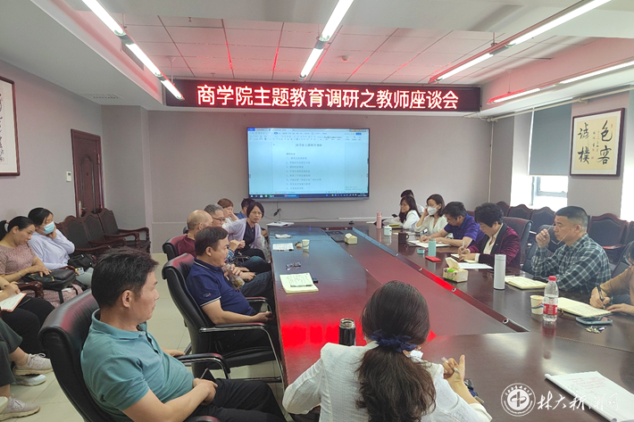 【林大网讯】(文/商学院)5月16日下午,商学院召开学习贯彻习近平新时代中国特色社会主义思想主题教育调研之教师座谈会,全体班子成员和来自各系的21名教师代表参加了座谈。会议由党委书记彭爽主持。